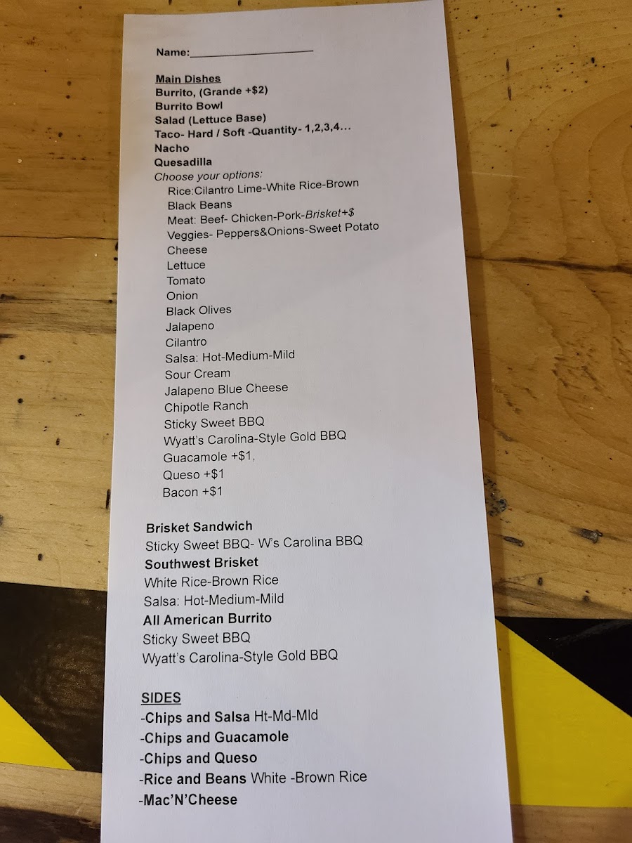 At Wyatt's, you can expect a laid-back dining experience, where ordering is as simple as grabbing a paper and highlighting your favorites. Customers rave about the tantalizing quesadillas and flavorful burrito bowls that showcase the restaurant’s commitment to quality ingredients and generous portions. The Mac bowl and the habanero pork are standout dishes that keep food enthusiasts returning for more.